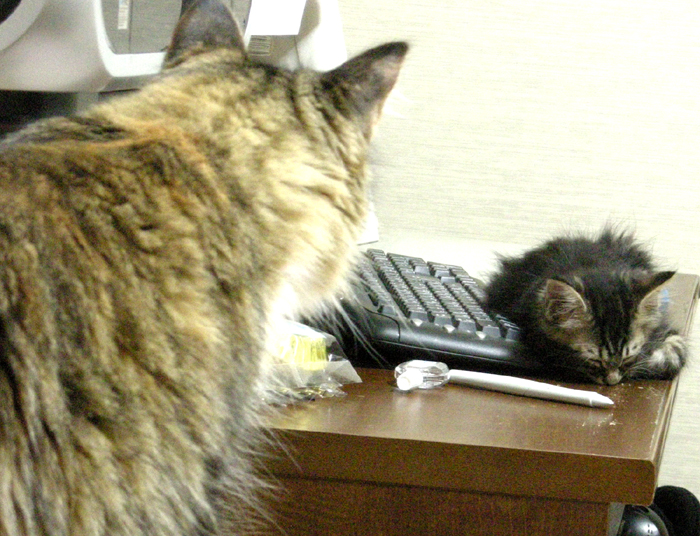 起きてるときは、遠巻きに見ているんだけど、寝てると見に行ってみたりしてるー。